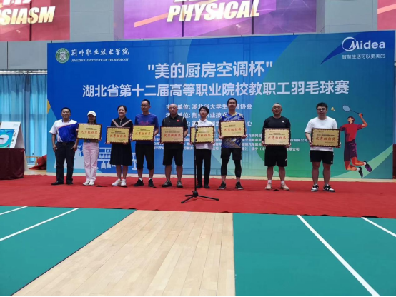 本网讯(通讯员 蔡璇/文 王军力/图)6月2日至3日,湖北省第十二届高等职业院校教职工羽毛球赛在荆州职业技术学院举行。我校代表队由副校长宋移安带领10名教职工组成,经过奋力拼博,我校荣获“优秀组织奖”。