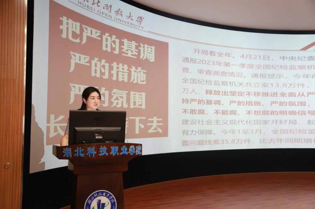 李智慧结合学校2023年纪检监察工作要点,以题为《提高履责本领 锻造过硬队伍,为学校纪检监察工作高质量发展提供保障》做主题发言,从辨形势、厘职责、清思路、明重点、强队伍五个方面,总结了2022年各位纪检委员履职情况,同时也对学校2023年纪检监察工作进行了部署安排。