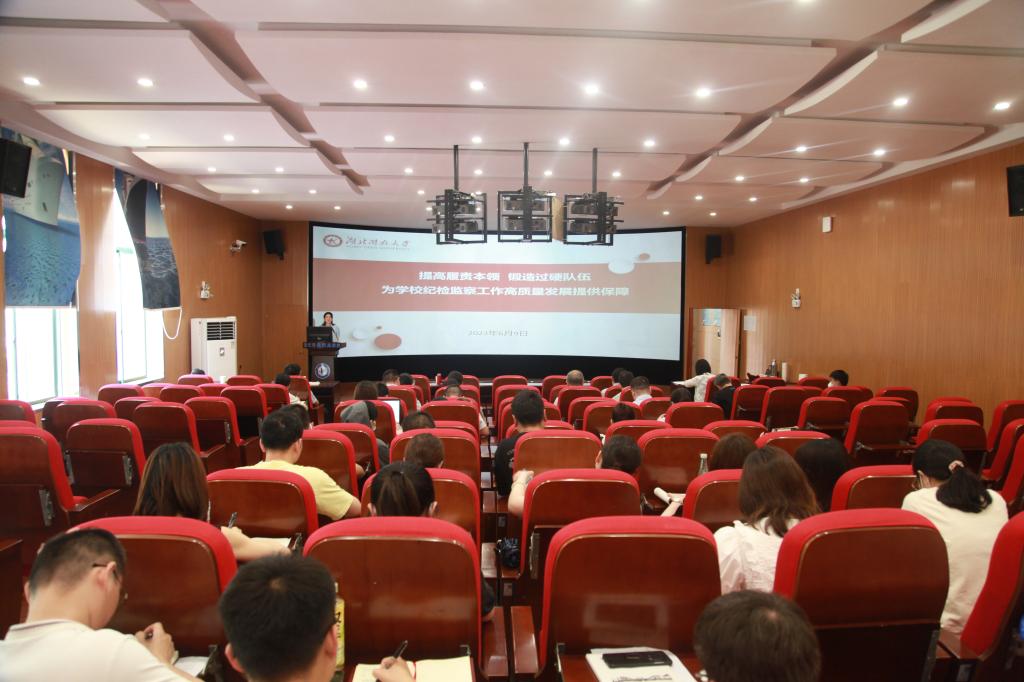 本网讯(通讯员 向晋怡/文 刘捷/图)为推动纪检监察干部队伍教育整顿工作走实走深,进一步提升学校纪检监察干部履职能力和水平,6月9日上午,学校纪委组织召开2023年基层党组织纪检委员培训会,学校纪委书记、监察专员张文凯出席会议并讲话。学校基层党组织纪检委员和全体专职纪检监察干部共40余人参加,会议由纪委副书记李智慧主持。