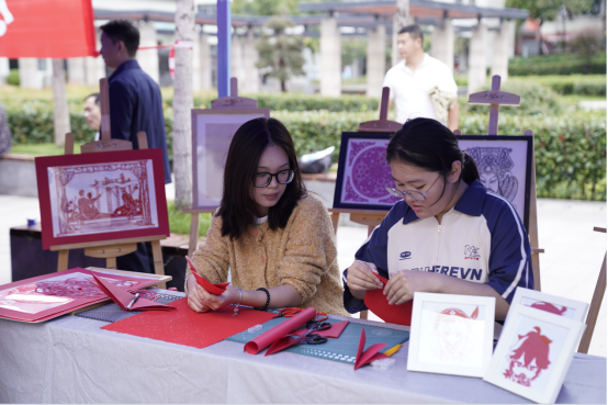 传媒艺术学院在新生报到场地开设“巧手剪‘廉’韵 非遗传‘清’风”的廉洁文化特色剪纸活动,现场报到新生很有感触地说道:“剪纸是门传统手艺,稍不注意就会剪坏,多剪一厘就会破坏整个作品。这就像在工作和生活中,如果越过‘廉’的红线,就会影响整个人生,所以必须在毫厘之间坚守底线。”这也正是本次展示的意义,把传统民俗文化与红色廉政文化相结合,以剪纸倡廉洁,以巧手传清风,助力“清廉校园”建设。