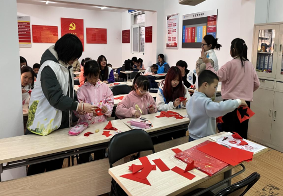 志愿者在社区参加“四点半学校 美育课堂”志愿服务