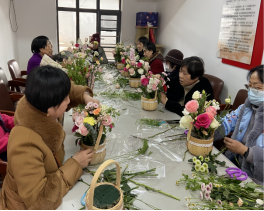 花艺师从鲜花的寓意、保养与摆放,色彩搭配再到插花技巧等方面给大家做了讲解和演示。大家聚精会神地看着听着,充分发挥自己的想象力和创作力,现学现用,用灵巧的双手,将粉玫瑰、风信子、绿灵草等多种花材,修枝剪叶、搭配色彩、高低整合、形成了一幅幅独具匠心又饱含深意的小花篮。党员活动室里花香四溢、春意盎然,弥漫着节日气氛。看着自己的杰作,笑靥如花的老同志与鲜花一起组成了一幅幅赏心悦目的插画。