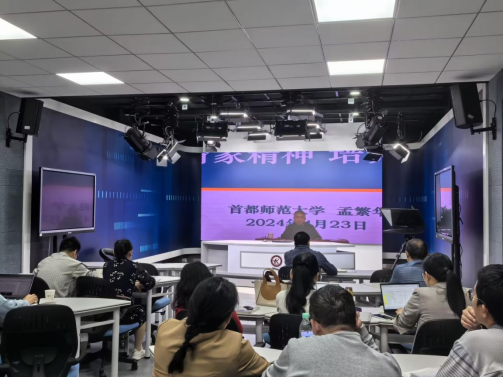 此次讲座,由原首都师范大学党委书记、校长孟繁华教授担任主讲,他从教育家精神三维透视、弘扬教育家精神是高质量教师队伍建设的时代要求、以教育家精神引领教师专业成长三个方面做了精彩的分享,并结合本体论、认识论、方法论深入剖析了教育家精神实质,教育引导教师们在弘扬教育家精神中实现自我专业成长。