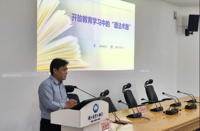 刘茂财为新生讲授开学第一课《开放教育学习中的“道法术器”》,他鼓励学生树立学习目标,运用好学习技巧与方法,有效地使用学习工具。