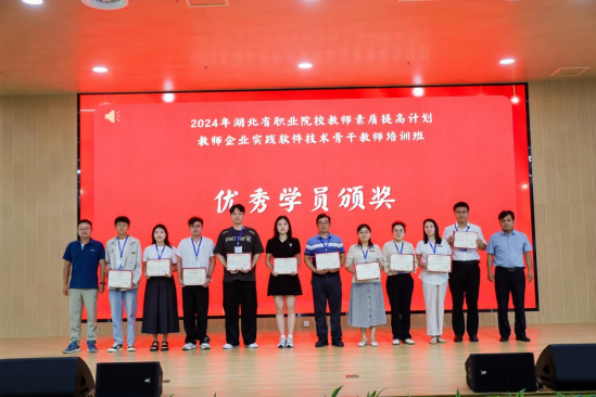 本网讯(通讯员 柯维/文 欧阳鹏/图)8月16日上午,为期28天的2024年湖北省职业院校教师素质提高计划教师企业实践软件技术骨干教师培训班在我校举行结业典礼,我校培训学院副院长刘茂财,软件工程学院党总支书记郝锐、副院长赵海波,以及全体学员参加仪式,结业典礼由郝锐主持。