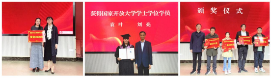 会上,教务处处长谢永平宣读了2023年度学生获奖及获取学位证书的决定,参会领导分别为获得国家开放大学文学学士学位学员代表、国家开放大学优秀毕业生学员代表及湖北开放大学奖学金学员代表颁发证书及颁奖。