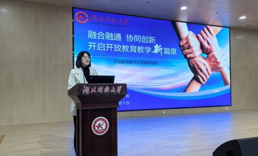 人文管理学院、开放教育学院副院长周俐副教授为全校教师作开放教育教学业务专题培训。周俐详细介绍我校开放教育的历史发展背景、组织架构,紧扣开放教育领域最新政策,深入解读了开放教育特色教学模式,全面解析了开放教育相关教学业务要点。从教学质量排名稳居第一方阵,学位申报率、通过率大幅提升,数智赋能教学改革有成果和教学改革与竞赛有新突破四个方面点明开放教育的努力方向,为参会教师提供了宝贵的指导和启示。