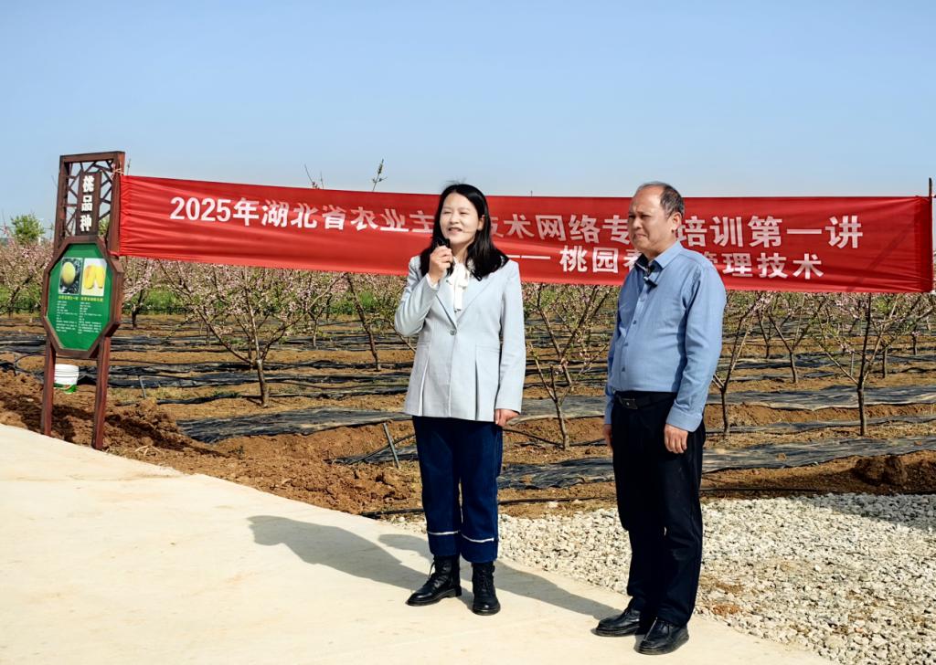 本网讯(通讯员 宋堃/文 陈霞/图)为进一步加快农业主推技术推广落地,让科技赋能农业发展,4月2日,由湖北省农业科技人才办公室指导,我校承办的2025年湖北省农业主推技术网络专题培训第一讲“桃园春季管理技术”培训课,走进湖北省枣阳市黄桃生态合作社。
