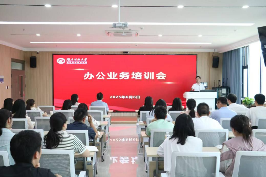 本网讯(通讯员 钟鹏/文 李贺刚/图)为进一步提升学校办公业务水平的规范化、科学化,6月6日下午,学校举办办公业务培训会,各单位(部门)党政办主任、综合事务负责人,党办校办全体成员参加培训。