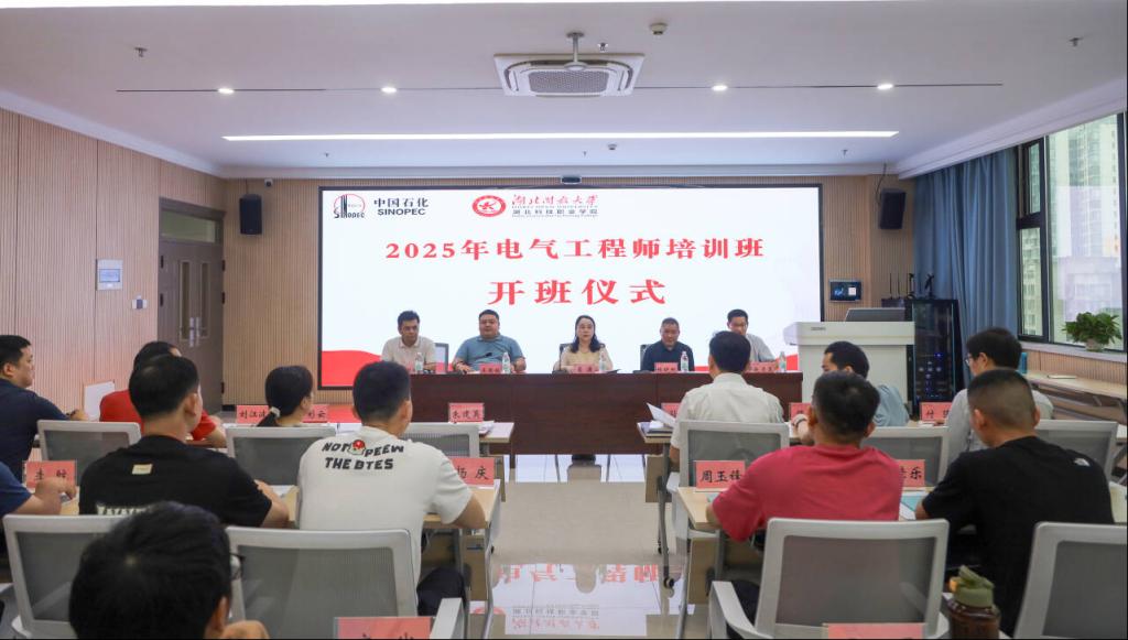 本网讯(通讯员 陈霞/文 宋堃 李莉莉/图)6月10日上午,中石化江汉石油工程有限公司2025年电气工程师培训班开班仪式在我校培训中心报告厅举行。校党委常委肖潇出席开班仪式并致辞,公司党委组织部副部长、人力资源部副经理王国栋参加了仪式。本次培训由培训学院承办,机电工程学院协办。
