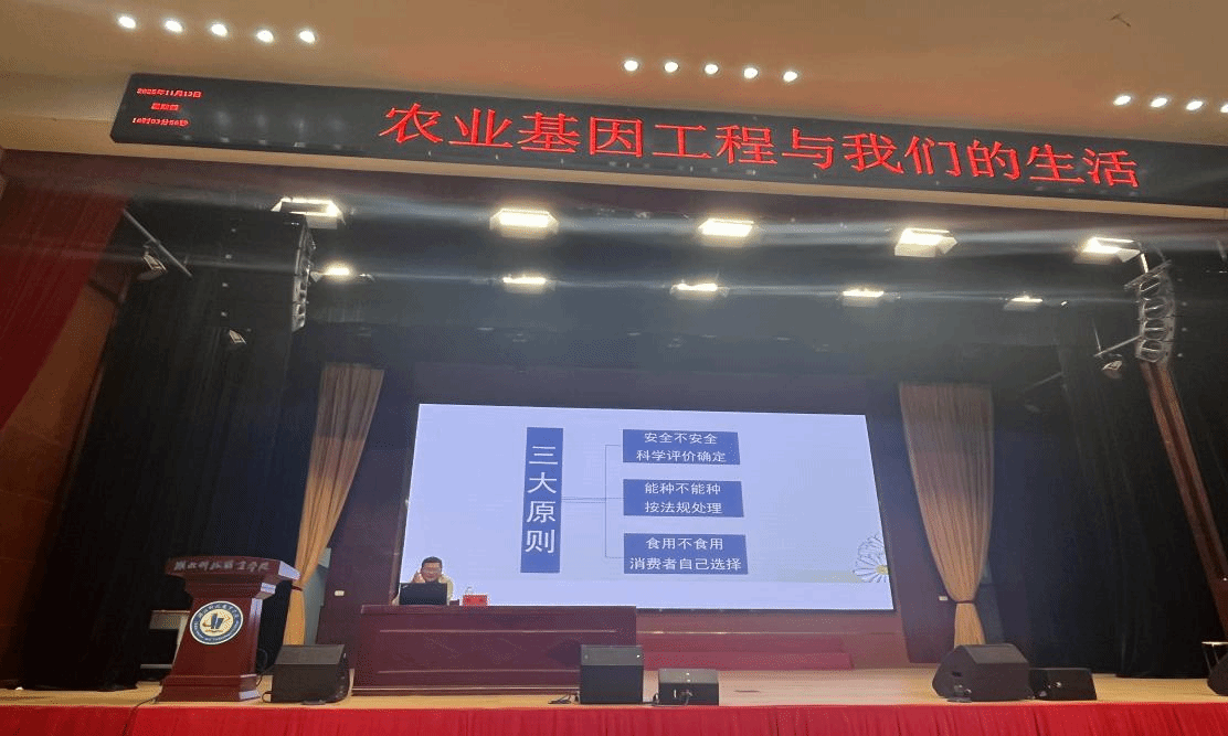 陈浩教授以“天然的作物并不存在”为切入点,系统阐释了作物驯化与育种的历史脉络。他结合国内外数据与典型案例,介绍了转基因技术的科学原理与应用现状,解析其在打破物种生殖隔离、实现性状精准改良方面的技术优势,并列举抗虫棉花、抗病毒木瓜等已获批商业化种植的作物。针对公众关注的生物安全问题,他重点讲解了我国建立的严格评价体系,涵盖营养成分分析、致敏性试验与毒理学检测等多重程序,强调“安全由科学评价决定”的基本原则