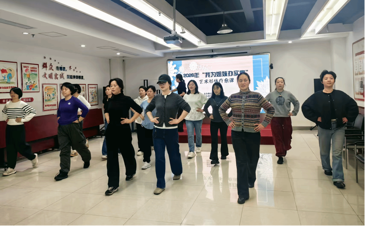 3月27日,课程进驻江岸区百步亭社区,杨巧利讲师主讲“艺境疗愈”形体与情绪管理专场,为15名社区基层妇女干部及群众提供专业训练与心理疏导,参与学员普遍反馈课程结束后“身心感觉更加轻盈舒畅”。