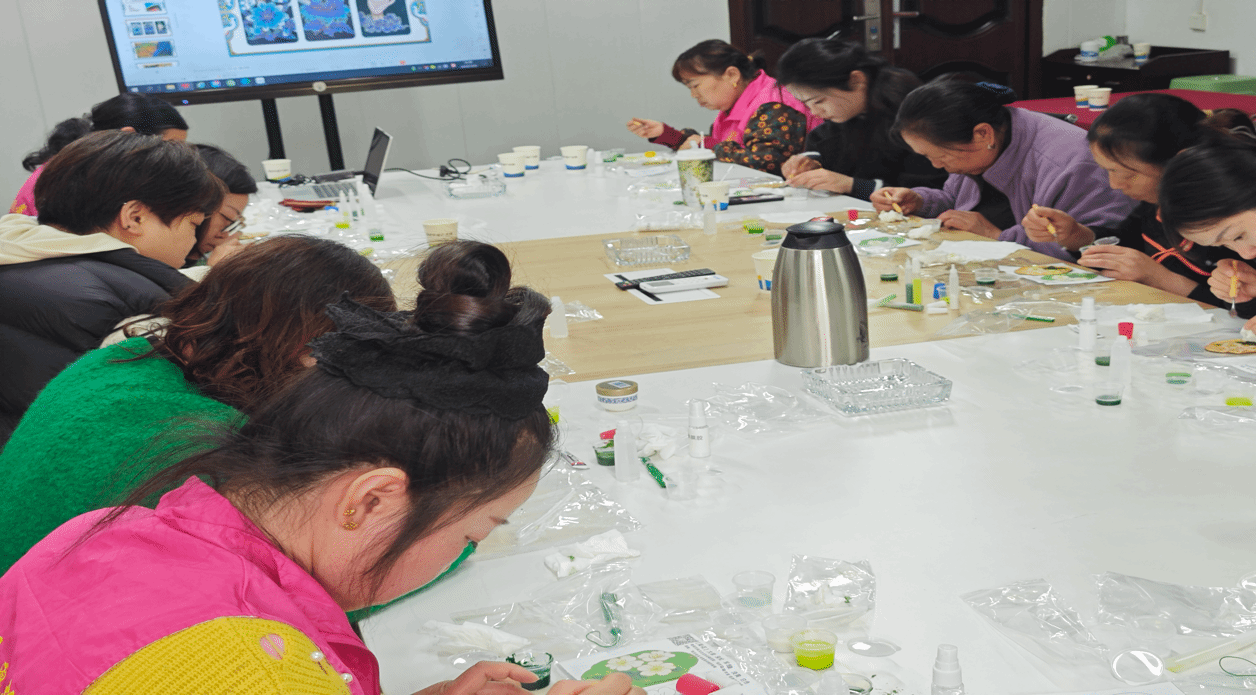 3月26日,“茶艺解压”课程走进武昌区杨园街道数创大厦,孙维奇讲师带领20名企业职工学习绿茶冲泡技艺,在茶艺体验中引导大家舒缓情绪、缓解精神内耗;同日下午,东西湖区径河街道开展“掐丝珐琅非遗手作”课程,周玉媛讲师指导15名社区妇女群众亲手体验掐丝、点蓝等传统工艺,在非遗实践中实现“以艺养心”的课程目标。