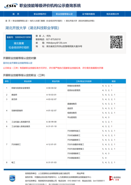 本网讯(通讯员 何为 文/图)3月7日,经武汉市人社局评定、省人社厅审批、人社部备案,认定我校具备社会培训评价组织职业技能等级认定条件。至此,我校现已具备茶艺师、美容师等共8大类5个等级的职业技能等级认定职业(工种)的认定资格。
