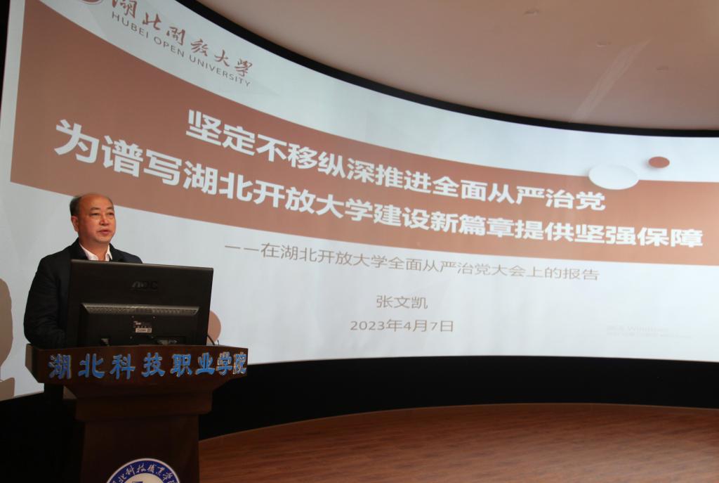 本网讯(通讯员 李玲芳/文 刘捷/图) 4月7日上午, 学校召开部署2023年全面从严治党、平安校园建设工作会,会议由校党委书记刘义主持,全体校领导、副处级以上领导干部参会。
