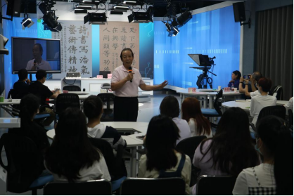 此次活动,在湖北开放大学全景演播厅举行,全省开放教育体系80个教学单位的万名师生在云端参与,湖北省硬笔书法家协会主席柳长忠、湖北省硬笔书法家协会副主席王功尚、国家开放大学艺术学院教授李建强也专程抵达现场聆听庞中华精彩的讲座。庞中华以“快乐书写,浸润心灵”为题,与现场同学及云端师生展开互动交流。演播厅内不时传出富于激情的诗歌朗诵声、歌声、笑声和掌声。