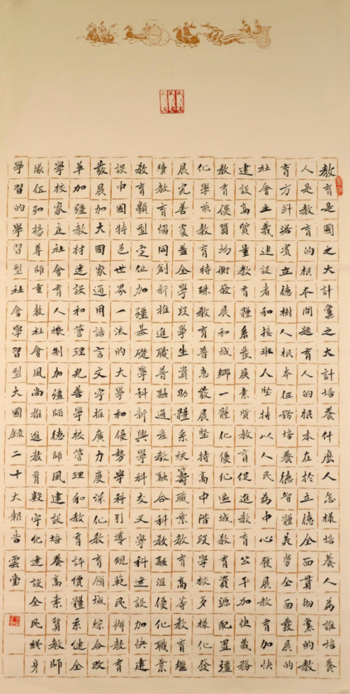 经各市(州)电大、直属学院选拔推荐,全省体系共有175位师生近200幅优秀作品参加了省赛选拔评比。其中,教师软笔44件、教师硬笔73件、学生软笔20件、学生硬笔43件。省校邀请校内、外书法专家,按照“公平、公正、公开”的原则组织评审,共评出一等奖20件、二等奖37件、三等奖51件及11个教学单位优秀组织奖。届时,省校将根据专家评审意见,推荐排序考前的获奖作品参加国家开放大学“学习二十大 奋进新征程”师生书法大赛。