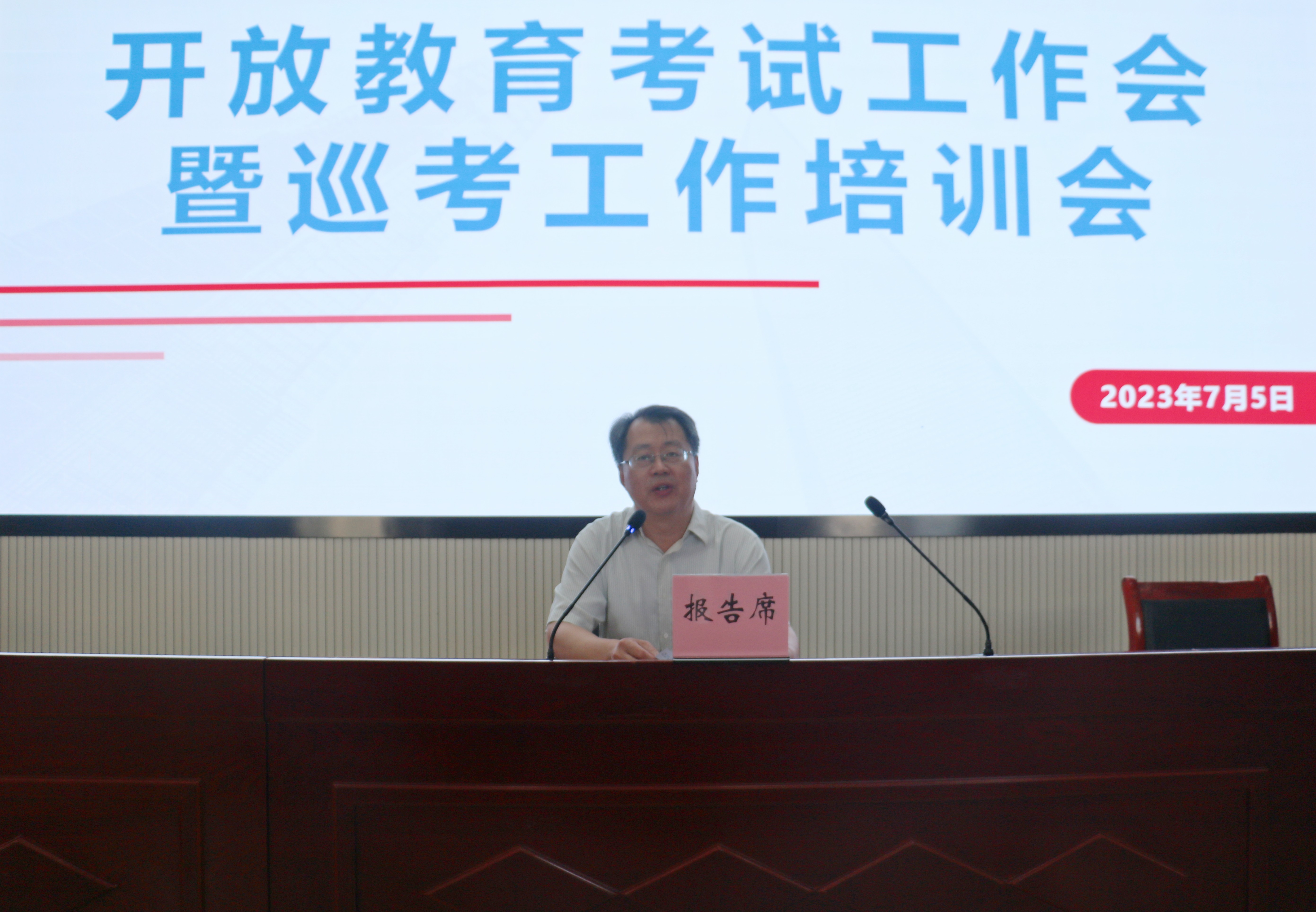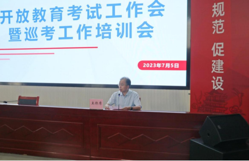 本网讯(通讯员 余海辉/文 李贺刚/图)7月5日上午,我校召开2023年春季学期开放教育期末考试巡考工作部署暨巡考工作培训会。校党委领导班子全体成员出席会议,各巡考片区组长及巡蹲考人员近150人参加会议。会议由副校长、副主考汤春来主持。
