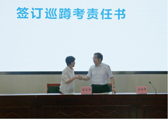 会上,校长、主考钟毓宁与巡考人员代表签订了巡考责任书;巡考片区组长代表汪刚作了表态发言。教务处负责人王海洋对巡考工作进行了安排布置;教务处副处长戈红兵就巡考业务对巡考人员进行了专题培训。