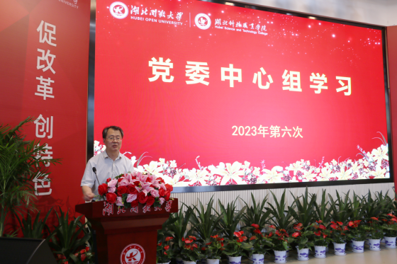 党委书记刘义作总结讲话。他认为,习近平总书记在中共中央政治局第五次集体学习时的重要讲话深刻阐述了中国特色社会主义教育强国的丰富内涵,科学回答了培养什么人、怎样培养人、为谁培养人,如何促进教育高质量发展,如何服务教育高质量发展等关键问题。为我们在新征程上加快推进教育现代化、建设教育强国、办好人民满意的教育指明了前进方向、提供了根本遵循。刘义指出,建设教育强国是全面建成社会主义现代化强国的战略先导,是实现高水平科技自立自强的重要支撑,是以中国式现代化全面推进中华民族伟大复兴的基础工程。推进教育强国建设,数字化建设是关键。刘书记介绍了清华大学、华中师范大学、深圳职业技术学院数字化建设的经验。结合2023年全国教育数字化现场推进会,他强调,学校以教育信息技术为支撑,始终站在教育技术变革的潮头,经历了广播电视、互联网,再到现在的数字化建设,要把数字化转型作为我校开辟教育发展新赛道和塑造教育发展新优势的突破口,进一步深入学习贯彻党的二十大精神,全面贯彻落实习近平总书记关于教育的重要论述和关于数字中国的重要指示精神,特别是在中共中央政治局第五次集体学习时的重要讲话精神,站在中国式现代化的高度去认识教育数字化的重要战略意义,把握发展规律,抓住历史机遇,积极落实国家教育数字化战略行动,不断推动信息技术与教育治理和教育教学深度融合,加快推进教育数字化转型,助力高水平开放型大学建设。