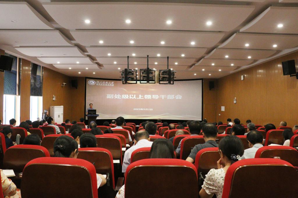本网讯(通讯员 李玲芳/文 徐敏/图)9月2日上午,学校召开副处级以上领导干部会,会议由校党委书记刘义主持,校长钟毓宁,纪委书记、监察专员张文凯,副校长宋移安、汤春来,党委常委张化斌、李宜兵出席,副处级以上领导干部参加。