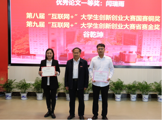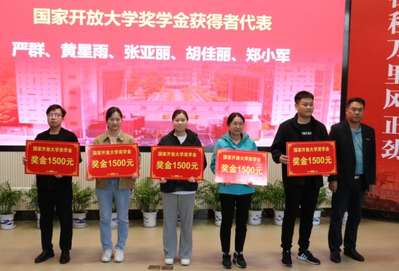 会上,导学中心桂高山主任从国家级、省级、国家开放大学三个层面通报了2022-2023年度师生获奖情况,与会领导分别为获得国家开放大学汉语言专业优秀论文一等奖的闫瑞雨同学、中国国际“互联网+”大赛国赛铜奖、省赛金奖获得者谷乾坤同学,以及获得国家开放大学、湖北开放大学奖学金的学生代表颁奖。
