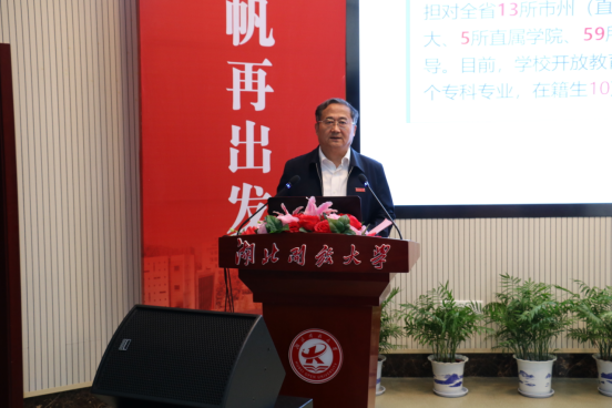 钟毓宁教授为大家讲授开学第一课《启航新征程,逐梦向未来,用奋斗书写时代华章》。钟毓宁向全体新生介绍了开放大学这所没有围墙的大学、家门口的大学的独特办学优势,宣讲了开放大学致力于为同学们提供优质教育资源和灵活学习方式的教学特色,如数家珍地介绍了学校近年来取得的发展成就。他的讲课,既立意高远又内涵丰富,既旁征博引又深入浅出,向大家传授了成功的重要秘籍,挑战自我、超越自我、成就自我,给同学们描绘了美好的未来。他从三个方面向全体新同学提出了殷切希望:一是要以“德”为先,坚守家国情怀国,努力将个人的理想奋斗融入党和国家事业之中,勇于担当作为、追求卓越,克服和战胜前进道路中的各种困难和挑战,真正成为中国特色社会主义事业的建设者和接班人;二是要以“勤”为本,锻造过硬本领,高效学习,自我提升,践行勤勉奋斗的良好风尚,努力成为别人眼中“与时间赛跑的人”和“努力看齐的人”,早日达成自我价值实现的目标。三是要以“新”为要,勇于突破创新,在校期间和毕业以后,始终保持-颗质疑和创新的心,在各行各业、千千万万个工作岗位上做出与众不同的业绩。