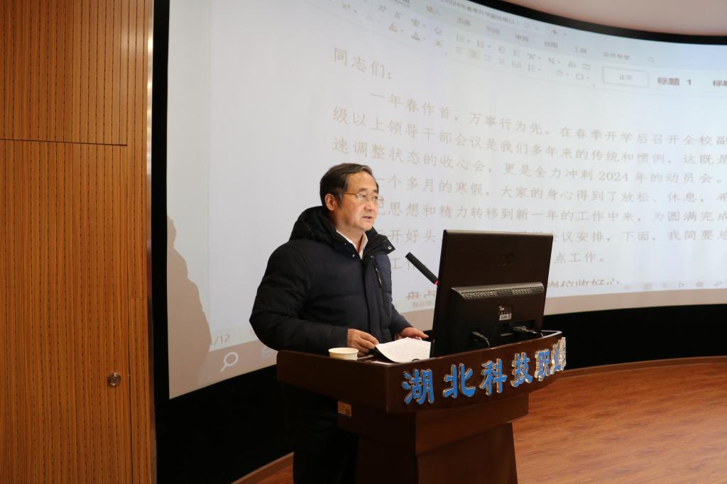 刘义强调,2024年是学校事业发展的关键一年,挑战与机遇并存,大家要坚定信心,把握重点,着力从三个方面抓好落实。一要积极谋划,主动作为。过去几年,我们依靠自身努力取得了很好的发展成效,我们要继续坚持目标导向,积极谋划、主动作为,遇到困难和问题多找内因、少找外因,增强推进工作的主动性和创造性。二要敢于斗争,久久为功。今年学校提出了“稳中求进、以进促稳”工作总基调,其目的就是为了发展。学校事业迈入高质量发展新阶段,再取得突破难度比以往更大,我们要继续保持战略定力和发展耐心,坚持创新突破,持之以恒、以久致胜。三要善于学习,注重总结。当今世界正处于百年未有之大变局,在贯彻新发展理念、构建新发展格局、推动高质量发展过程中遇到的问题比以往更加多样复杂,有的领导干部感觉到了本领恐慌,我们要坚持问题导向,加强学习,结合实际学,带着问题学,跟着专家学,不断提升能力本领。要立足学校实际,坚持开放教育与职业教育融合发展,充分发挥新型高等学校的优势特色,切实做到在实践中总结、在总结中提高。