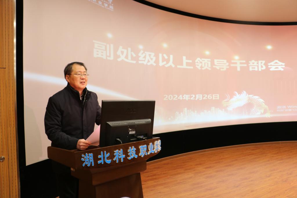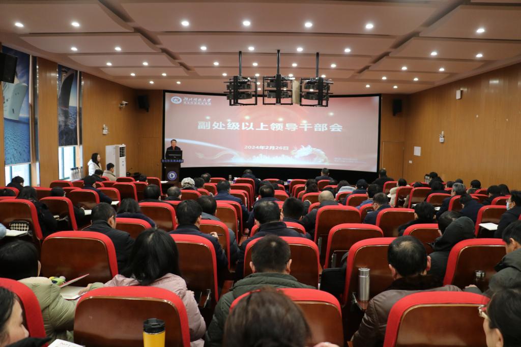 本网讯(通讯员 张虎/文 李贺刚/图)2月26日上午,学校召开副处级以上领导干部会议部署2024年重点工作。校党委书记刘义主持会议并讲话,校长钟毓宁作工作部署讲话,党委副书记何平,副校长宋移安、汤春来,党委常委张化斌、李宜兵出席会议。