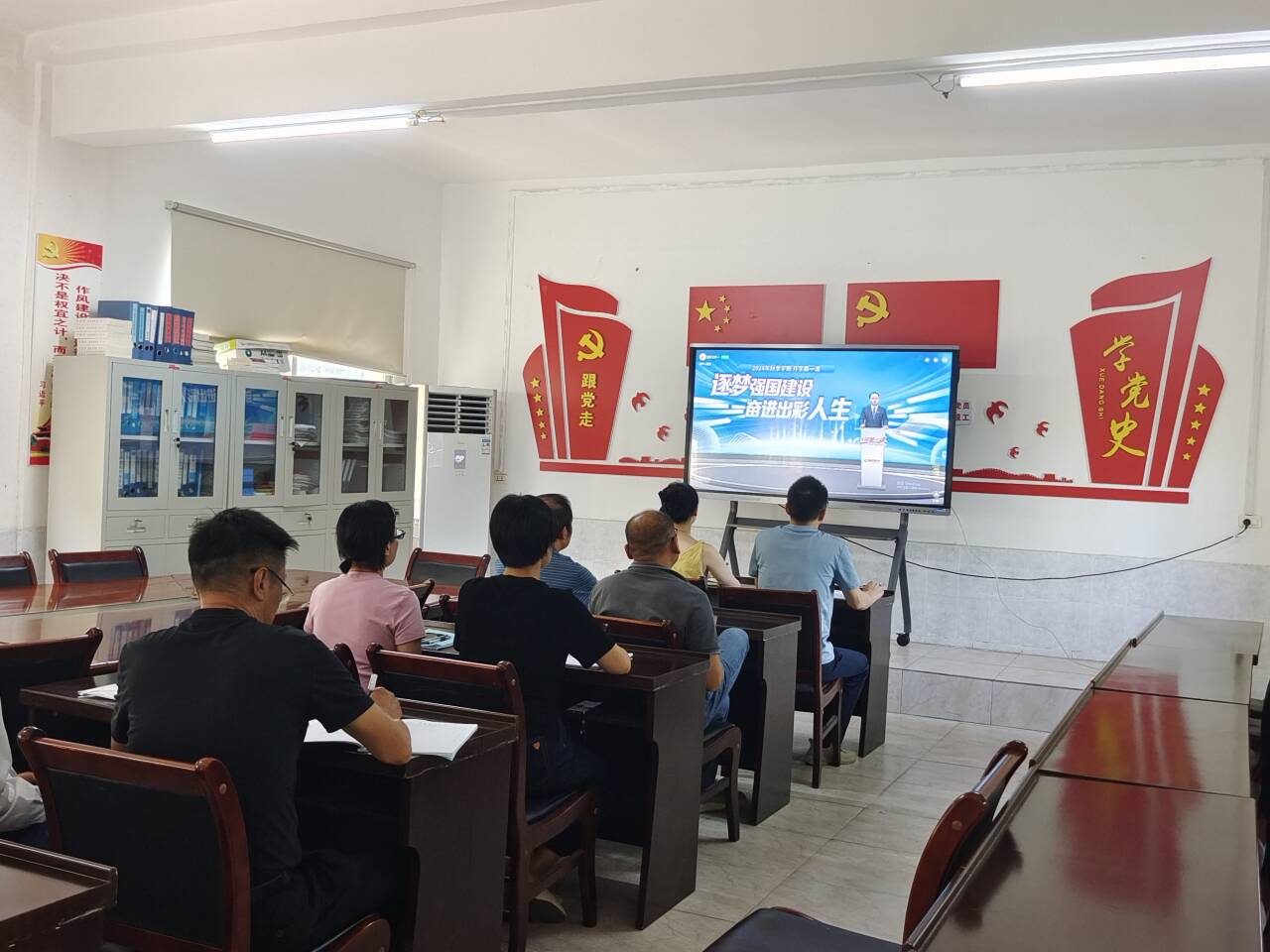 本网讯(通讯员 徐蕾/文 张磊/图)9月9日上午,国家开放大学副校长周天明以视频直播方式主讲了题为“逐梦强国建设,奋进出彩人生”的“开学第一课”。我校教务处、导学中心、马克思主义学院、开放教育学院领导班子及师生代表在全景演播厅集中收看学习。