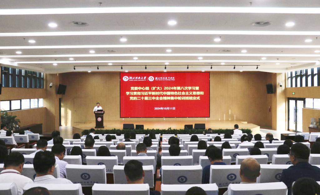 本网讯(通讯员 刘捷/文 李贺刚/图)10月11日下午,学校举行党委中心组(扩大)学习暨学习贯彻习近平新时代中国特色社会主义思想和党的二十届三中全会精神集中轮训班结业式。学习活动由校党委书记钟毓宁主持,校长陈志祥,党委副书记何平,副校长宋移安、汤春来,纪委书记丁华涛,副校长夏学文,党委常委李宜兵出席会议。校党委委员、校纪委委员,全体中层干部、科级干部参加学习活动。