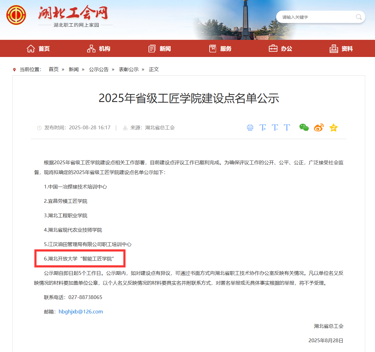 本网讯(通讯员 陈霞 文/图 )近日,从省总工会传来好消息,湖北开放大学“智能工匠学院”成功获批2025年省级工匠学院建设点。这一荣誉的获得,不仅是对学校多年来在职业教育领域深耕细作的高度肯定,更为学校培养高技能人才打造了一个重要的崭新平台。