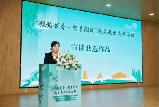 湖北省民政厅老龄工作处处长、一级调研员孔习兰宣读《关于“银龄书香・智享阅读” 活动优秀作品获选情况的通报》,宣布征文类、诵读类优秀作品获奖名单。