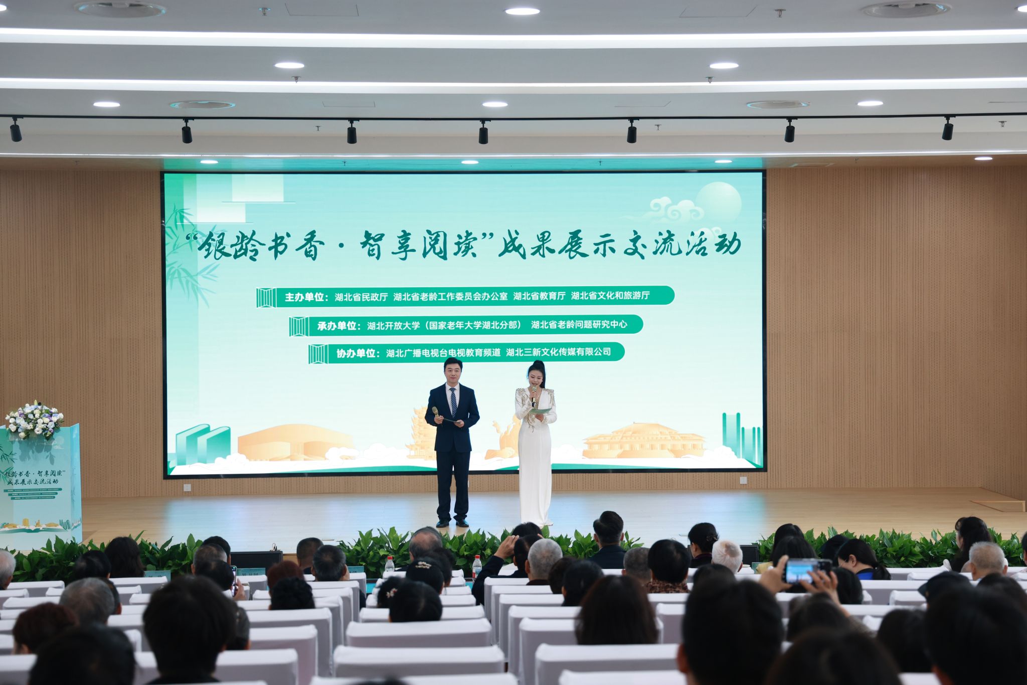 本网讯(通讯员 杨凡/文 刘样 大学生记者:方靖/图)由湖北省教育厅、湖北省民政厅、湖北省老龄工作委员会办公室、湖北省文化和旅游厅联合主办,湖北开放大学和湖北省老龄问题研究中心承办的“银龄书香·智享阅读”活动自开展以来,通过启动仪式、营造氛围、线上读书、征集作品等系列活动,有效激发了湖北省老年人的阅读热情,积累了丰富的阅读成果。10月27日,为期半年的活动以成果展示交流形式在湖北开放大学圆满落幕。省民政厅、省老龄问题研究中心、省教育厅、省文旅厅、湖北开放大学相关领导以及征文类、诵读类获奖作者代表,老年读者代表及新闻媒体代表共百余人现场见证。活动用视频回顾、作品集锦、现场朗诵、颁发证书、代表发言等多种形式,全方位呈现了本次活动的丰富成果,展现了当代老年阅读者的精神风貌。