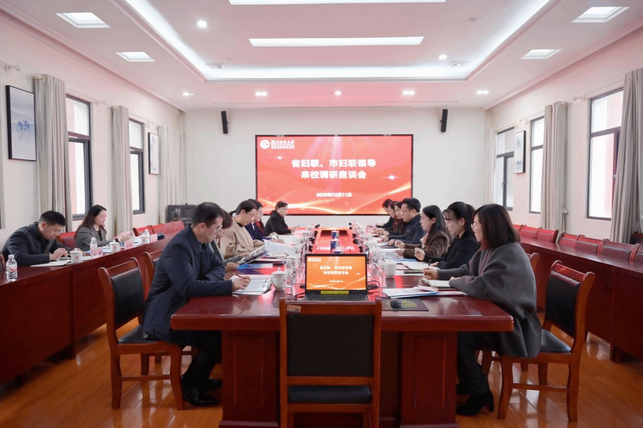 本网讯(通讯员 谭芬 黄晨雨/文 徐敏 大学生记者:孙熔/图)12月11日,湖北省妇联党组成员、副主席李燕,武汉市妇联党组成员、副主席陈文杰,湖北省妇女干部学校校长张家燕,武汉东湖新技术开发区妇联主席徐青霞等妇联系统领导一行来校调研。校党委副书记、校长陈志祥,党委常委肖潇陪同调研并出席座谈会。