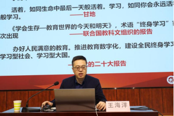 会上,王海洋以《同向发力共同缔造全民终身学习背景下的开放教育创新》为题作报告。他从概念溯源、时代使命、发展现状、路径探究和共同缔造五个方面进行了详细论述。他指出,各县(市)电大要明确发展定位、合理配置师资、稳定办学规模、规避办学风险、强化支持服务、积极融入社会,更好地服务全民终身学习为引领,推动新时代开放教育事业持续健康发展。