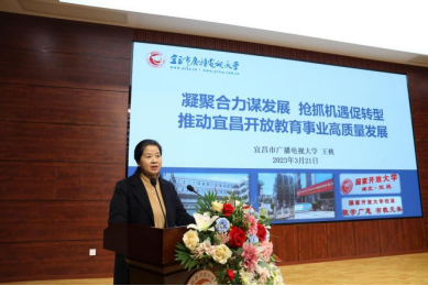 3月22日上午,宜昌电大邀请湖北开放大学教务处处长王海洋、社区教育学院负责人万婷作专题辅导报告。
