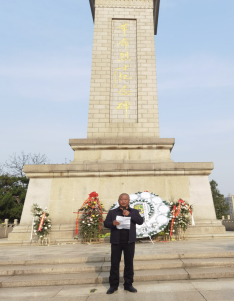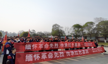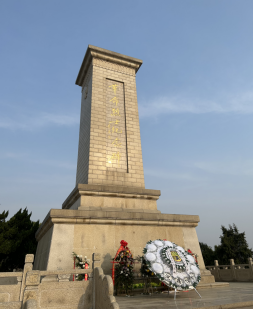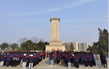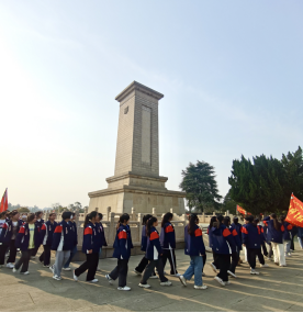 在为英雄烈士默哀后,全体师生向烈士纪念碑敬献花圈、花环,并缓步绕行、瞻仰纪念碑,全体师生怀着崇高的敬意祭奠长眠于此的英烈。