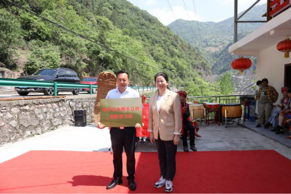 学校党委书记、校长王桃向鸭子口村居民学习点授牌,鸭子口村党支部副书记李涛接牌。李涛对大家的到来表示热烈欢迎,并对宜昌电大对鸭子口村乡村振兴工作的支持与帮助表示感谢。覃守生在讲话时指出,开展社区教育是在新农村建设中体现终身教育、公平教育、和谐教育、全民教育的新理念、新思想,对乡村振兴和共同缔造幸福长阳有着举足轻重的作用。