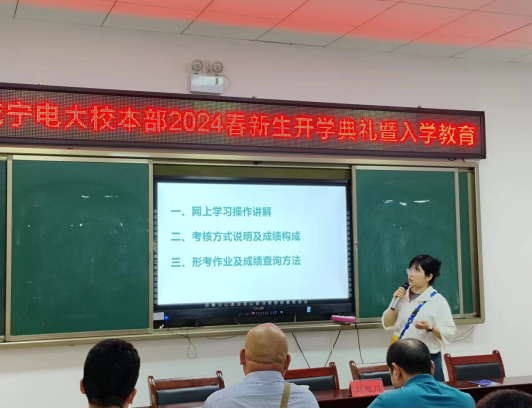 本报讯(通讯员 梅懿/文 刘楠/图)4月26日下午,咸宁电大开展了新生开学典礼暨入学教育活动。2024春季开放教育新生代表来到现场,咸宁电大全体教师参加活动,咸宁职业教育(集团)学校副校长、分管电大领导刘旭川出席活动并讲话。会议由咸宁电大主任王定全主持。