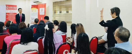 本网讯(沈文捷 田野/文 黄煦/图)9月21日至23日,我校海外学习(培训)中心在马来西亚吉隆坡开展面向当地师生的教育推介及专业培训活动,马来西亚林肯大学学院副校长Kelvin Tong博士和四十余名师生参加了此次活动。