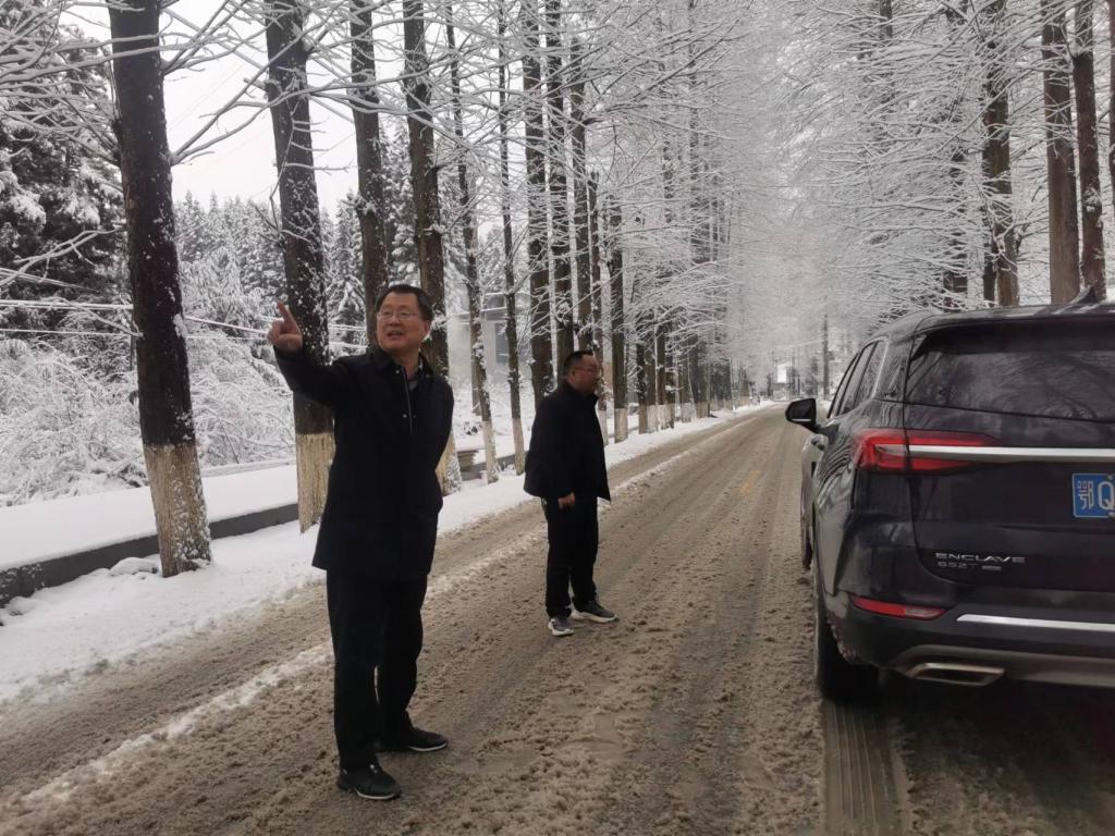 2月22日,湖北开放大学党委书记刘义一行冒着风雪严寒深入学校帮扶村利川市毛坝镇五二村调研指导乡村振兴工作。组织部常务副部长甄春霞、宣传部常务副部长吴国学、党办校办副主任刘周、利川市副市长卢超、毛坝镇党委副书记晏黎陪同调研。