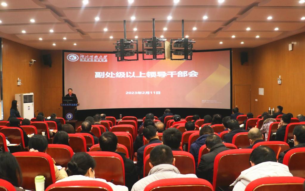 近日,湖北开放大学召开副处级以上领导干部会。校党委书记刘义,校长钟毓宁,纪委书记张文凯,副校长宋移安、汤春来,党委常委张化斌、李宜兵出席会议,副处级以上领导干部参加。会议由刘义主持。