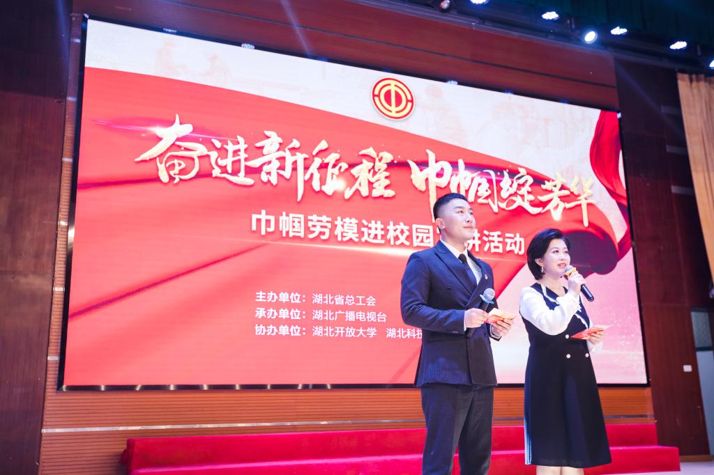 宣讲会上,湖北开放大学校领导张化斌为四位巾帼劳模佩戴绶带以及颁发工匠精神实践导师聘书。现场还进行了“奋进新征程 巾帼绽芳华”文艺汇演。整场宣讲活动既弘扬了劳模精神、劳动精神、工匠精神,又展现了当代大学生朝气蓬勃的生机,让青春在全面建设社会主义现代化国家的征程上绽放绚丽之花。