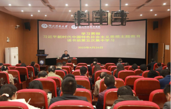 创新形式学。建好主题教育专题网站,细化具体学习材料和篇目,明确提出“七个一”学习安排,即制定一个自学计划、举办一个读书班、开展一次专家导读、撰写一篇心得体会、开展一系列培训、讲一次主题党课,创新推动“学思想”贴近工作实际,走深走实。邀请全国高职高专校长联席会议主席董刚教授来校以“学习贯彻新习近平新时代中国特色社会主义思想,扎实推进双高计划建设”为主题作辅导报告;校党委书记为总支、支部书记和教师代表讲党课,其他班子成员分别面向分管单位或部门党员干部、师生代表讲党课;邀请乡村振兴帮扶村利川市五二村党支部书记来访并为学生讲党课;各总支(支部)书记分别在所在单位讲党课等,努力让理论学习更有厚度,思想洗礼更有温度,专题研讨更有深度。