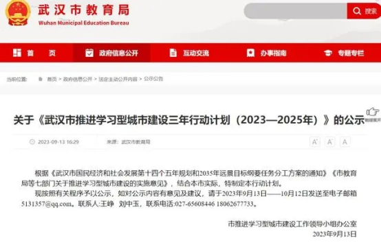 武汉市推进学习型城市建设3年行动计划(2023-2025年)公示截图