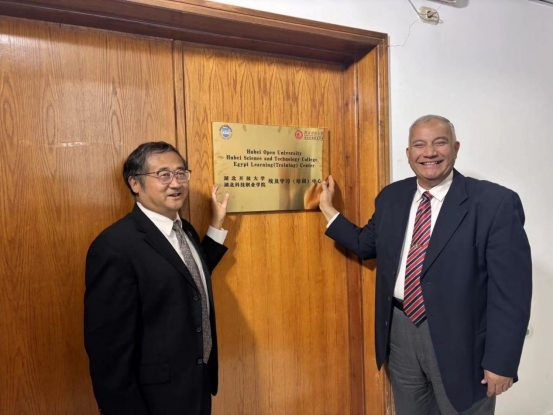 在埃及苏伊士运河大学,代表团深入调研了苏伊士运河大学的职业教育,详细了解了该校的教育资源、学生需求以及文化特色。苏伊士运河大学校长纳塞尔·曼杜尔先生表达了与中国高校加强交流合作的强烈愿望。他表示,中埃两国人民友好交往追溯久远,希望双方能够积极探索师生互访项目,围绕人工智能、软件技术等优势专业,开展“中文+职业技能”教育,期待通过教育与文化的交流互鉴,增进两校之间的友谊与合作。随后,双方就埃及的首家海外学习(培训)中心的建立进行了全方位、多层次的诚挚洽谈,成功挂牌湖北开放大学埃及学习(培训)中心。